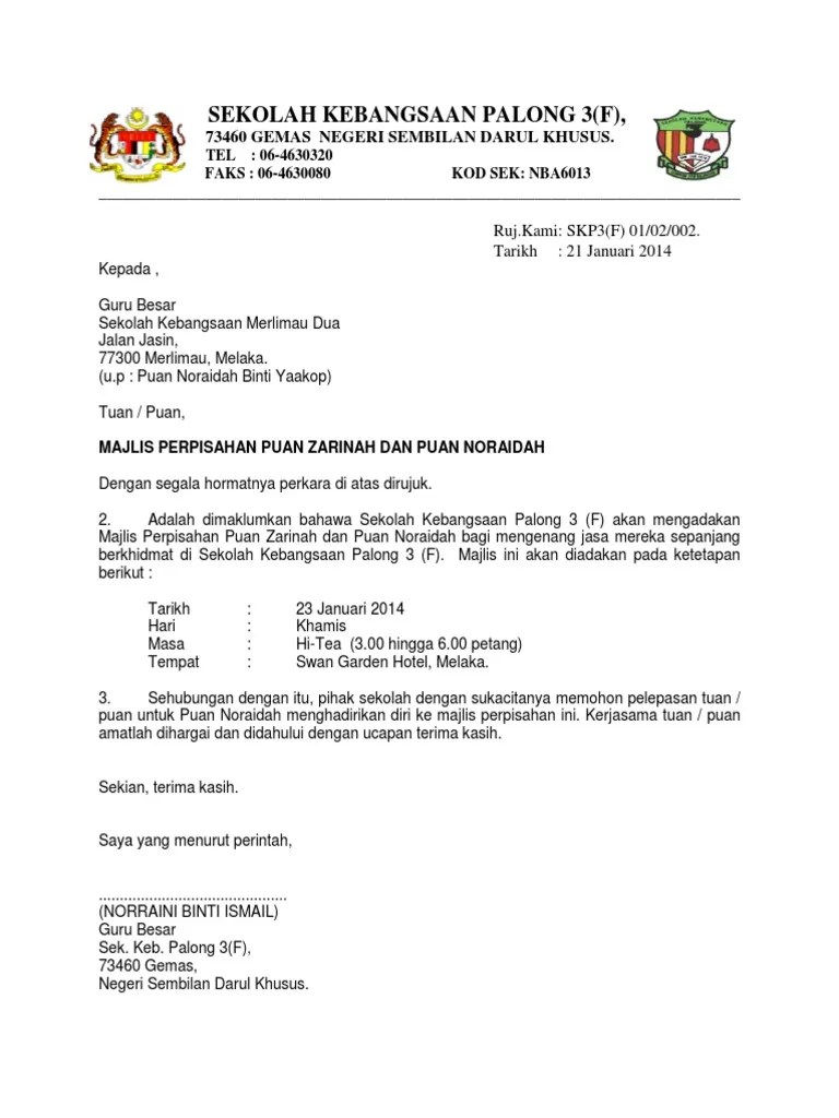 Undangan Perpisahan Kepala Sekolah P Manto from imgv2-1-f.scribdassets.com Surat izin merupakan surat yang berisi keterangan seseorang untuk meminta izin kepada instansi, salah satunya sekolah. Kebanyakan memang digunakan oleh perusahaan, instansi pemerintahan, lembaga, maupun organisasi. Organisasi siswa intra sekolah (osis). 27/jun/2012 kepada:semua guru berkenaan, melalui:pn pengetua tuan/ puan, memohon pelepasanperkara di atas adalah dirujuk. Inilah contoh surat kepada orang tua wali siswa : Mengetahui, kepala sekolah ketua osis smp negeri 2 pekanbaru. Contoh surat pelepasan perjalanan diperlukan bagi mengelakkan ada pihak sengaja bergerak bebas keluar tanpa alasan munasabah dengan segelintirnya mendakwa perlu memenuhi tuntutan bekerja. Contoh surat dinas lengkap, bisa untuk sekolah, perusahaan, karyawan, pemerintah, swasta dan lain sebagainya.