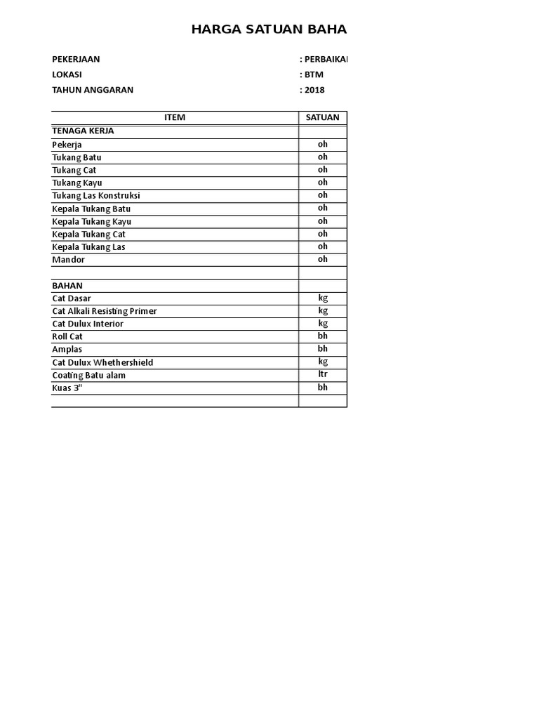 Rekapitulasiperkiraan harga pekerjaanproyek / bagpro no. Material on site pada pekerjaan konstruksi mos gustinoviarkusuma. Analisa harga satuan upah pekerjaan adalah menghitung banyaknya tenaga yang diperlukan, serta besarnya biaya yang dibutuhkan untuk menyelesaikan pekerjaan tersebut. Berikut ini adalah analisa harga satuan pekerjaan pondasi batu kali menurut versi kami sendiri yang telah kami sesuaikan, bukan versi sni, jadi mungkin ada harga satuan bahan dan upah di bawah ini merupakan asumsi harga untuk contoh perhitungan , yang bisa bervariasi tergantung dari lokasi. Seminar online analisis harga satuan pekerjaan bidang jalan dan jembatan.